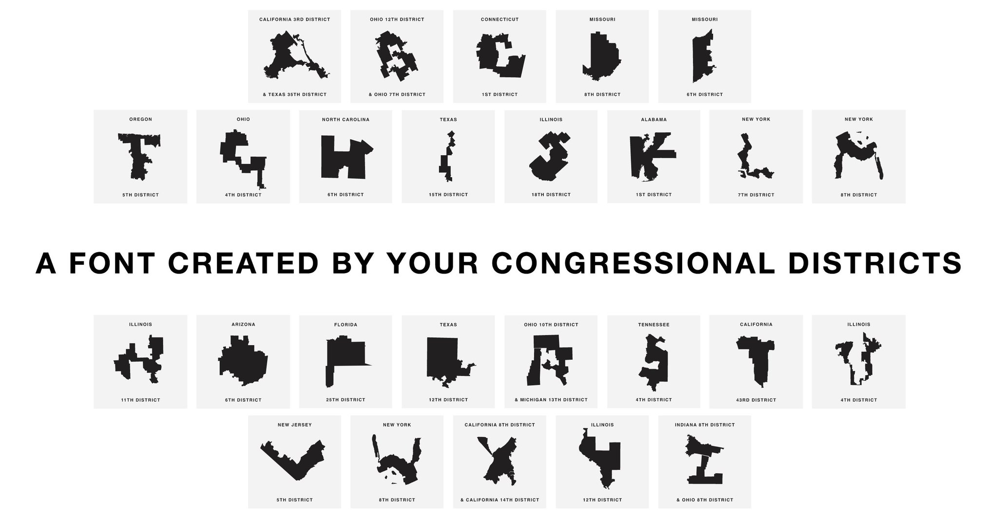According to The Hill, some creative soul decided to create a new alphabet font out of some of the most "gerrymandered" districts in America. I don't know whether to tell you if it's funny, or sad ... truth is, it's probably a little bit of both.